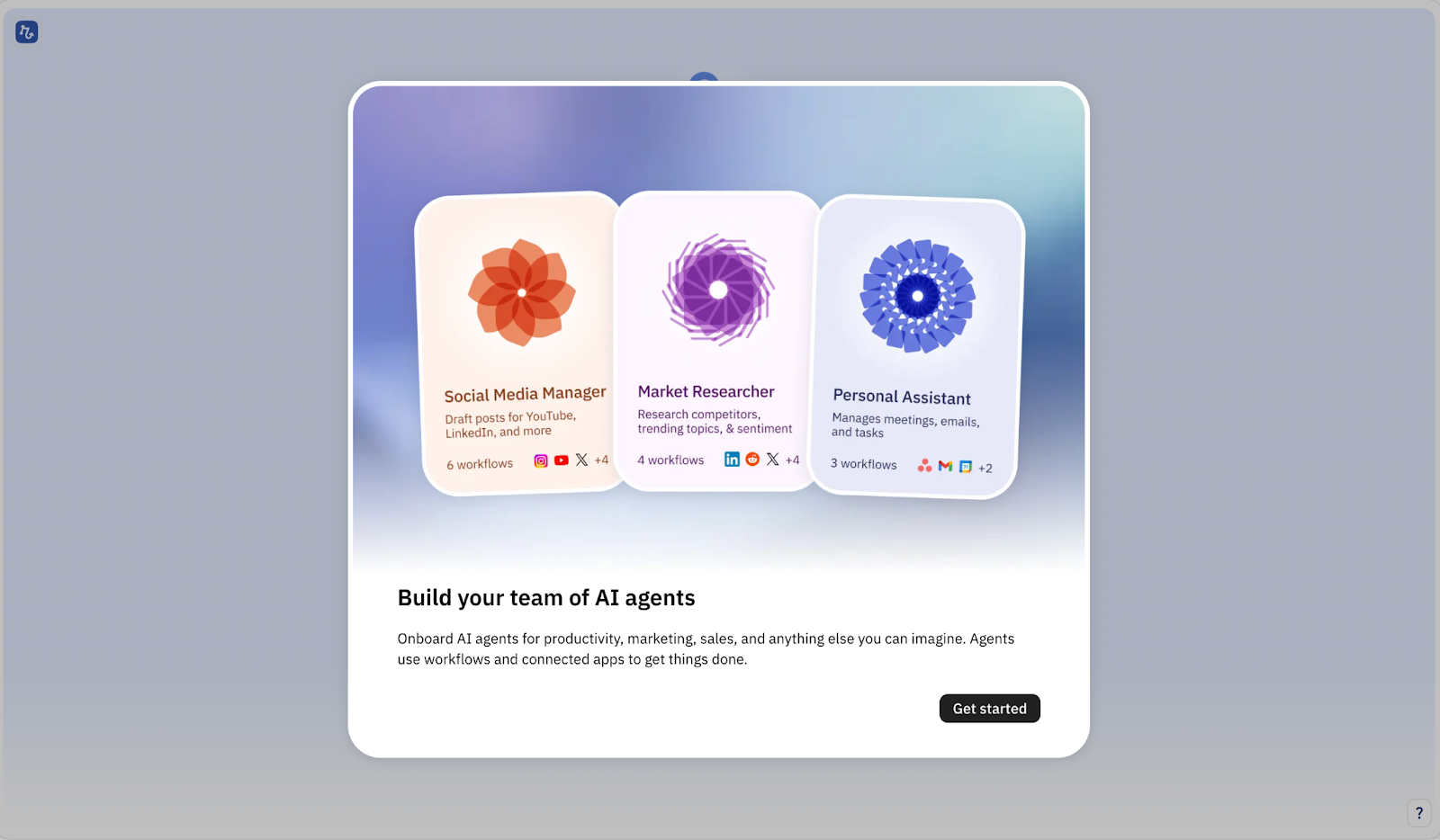 The first subtle way Relay does this is by changing the featured images on this pop-up. Every single agent suggested here aligns with what I’d be interested in building based on my context: