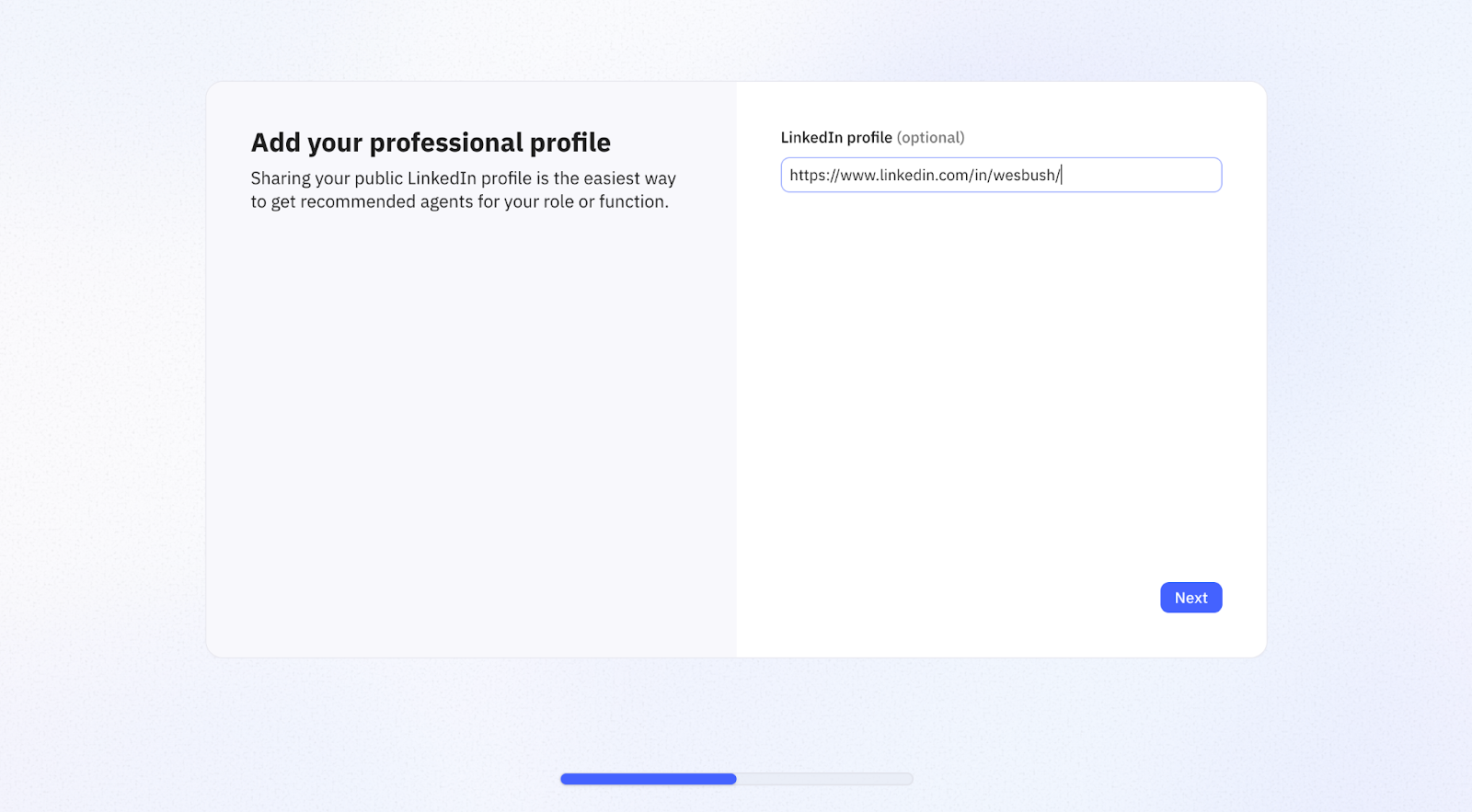 The app’s internal agent then goes to your profile, scans it for context, and uses the insights to personalize your onboarding.