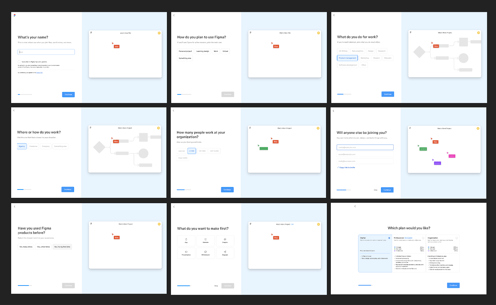 Figma’s use cases are far and wide. To make sure new users quickly get to value, Figma’s onboarding flow has: