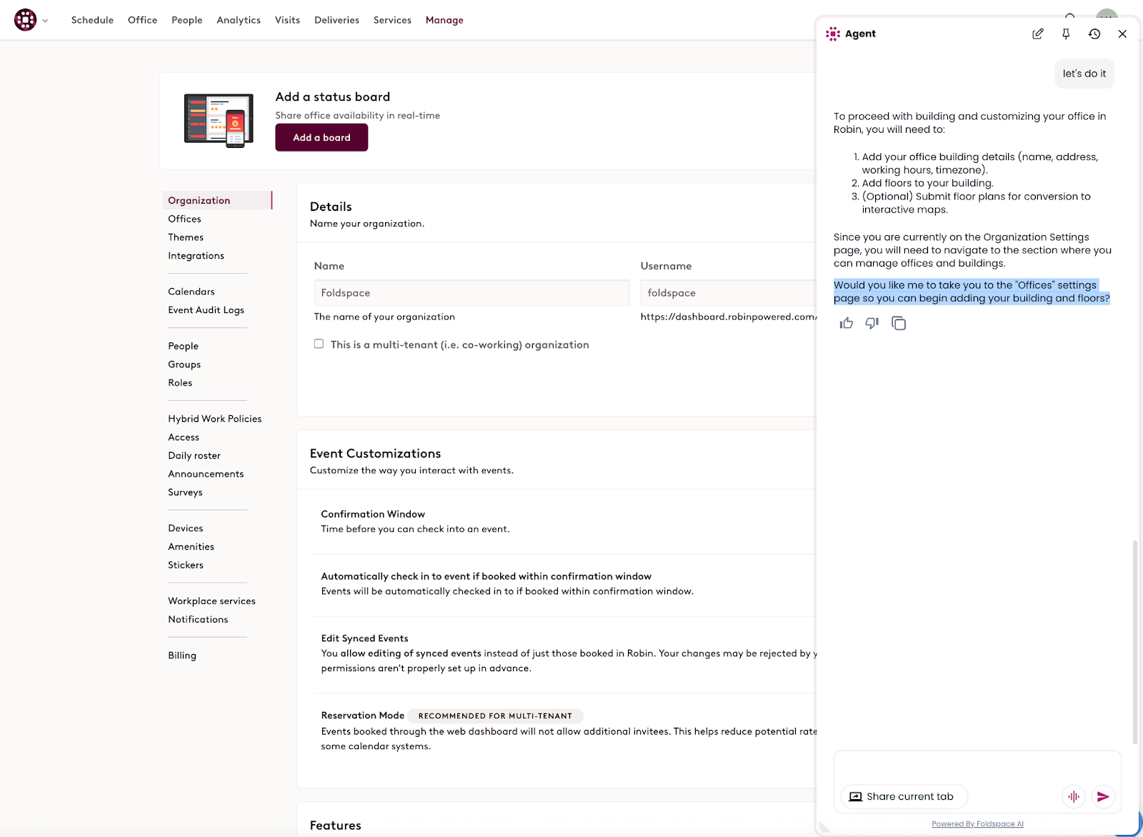 When you get to your workspace, the first screen is a checklist with an AI chatbot sidebar ⤵️