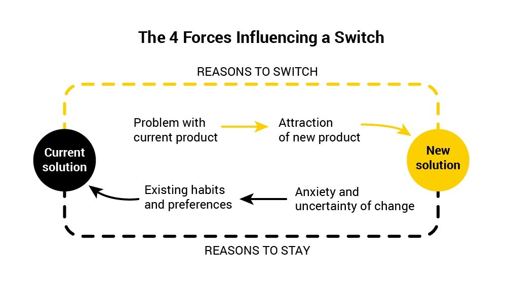 For that, you need to recognize the four progress-making forces that influence people to stick with the status quo or take the leap forward with a new solution: