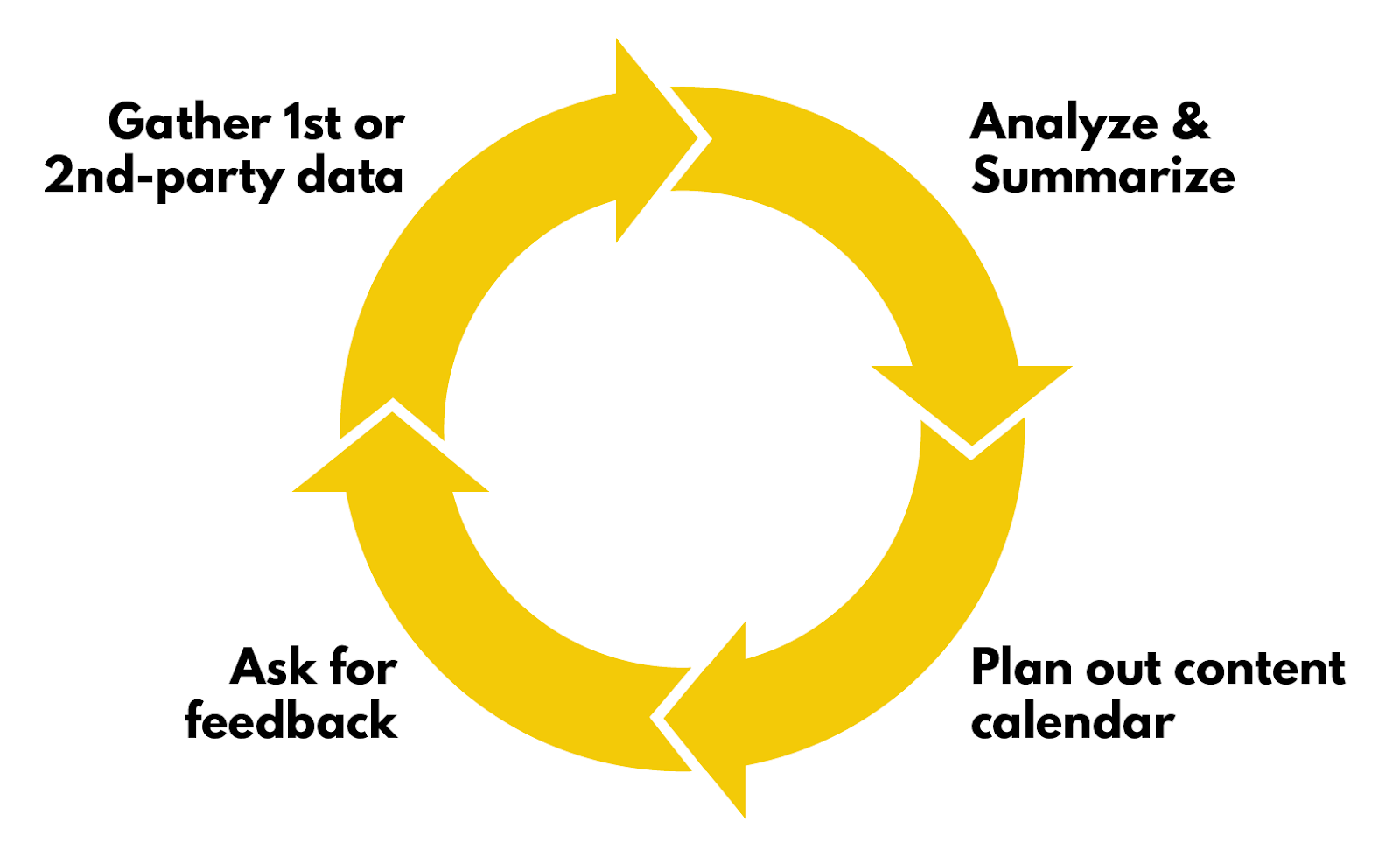 Conduct user interviews about what customers say about your content — what they liked, what product features resonated with them etc. Categorize your feedback to determine what you can talk about in your next blog post. What you uncover can be added to the first and second-party data to further the cycle.