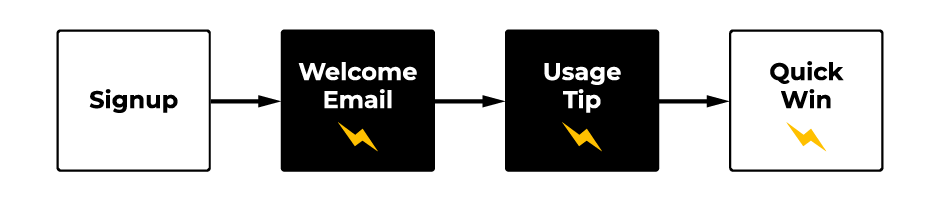 For the onboarding tracks below, I want to point out one detail that’s easy to miss. If you see a lightning bolt underneath the email, it’s a trigger-based email. If you see a clock underneath an email, it’s time-based. Now, that we’re on the same page, let's dive in!