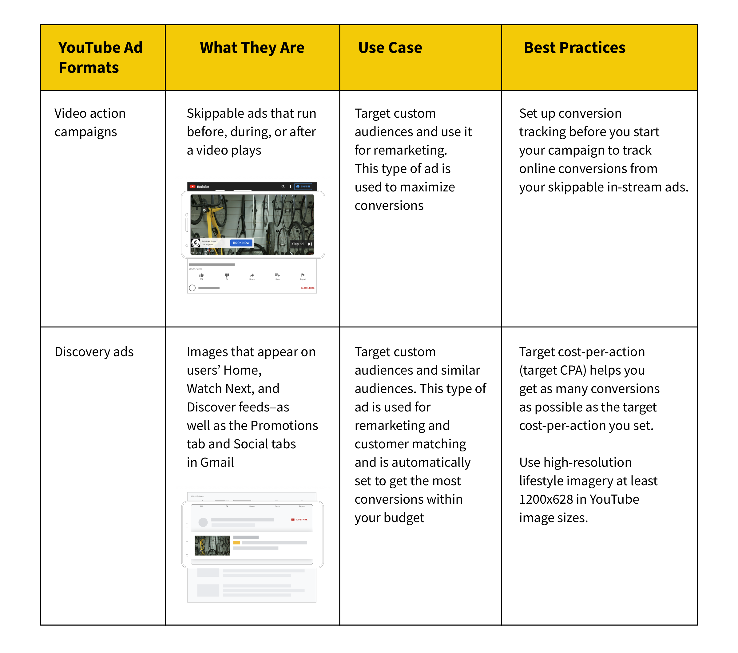 To get viewers to sign up, you’re going to want them to take action. Although you can use all of the ad formats listed above to drive subscriptions, two additional YouTube ad formats are recommended: video action campaigns and discovery ads.