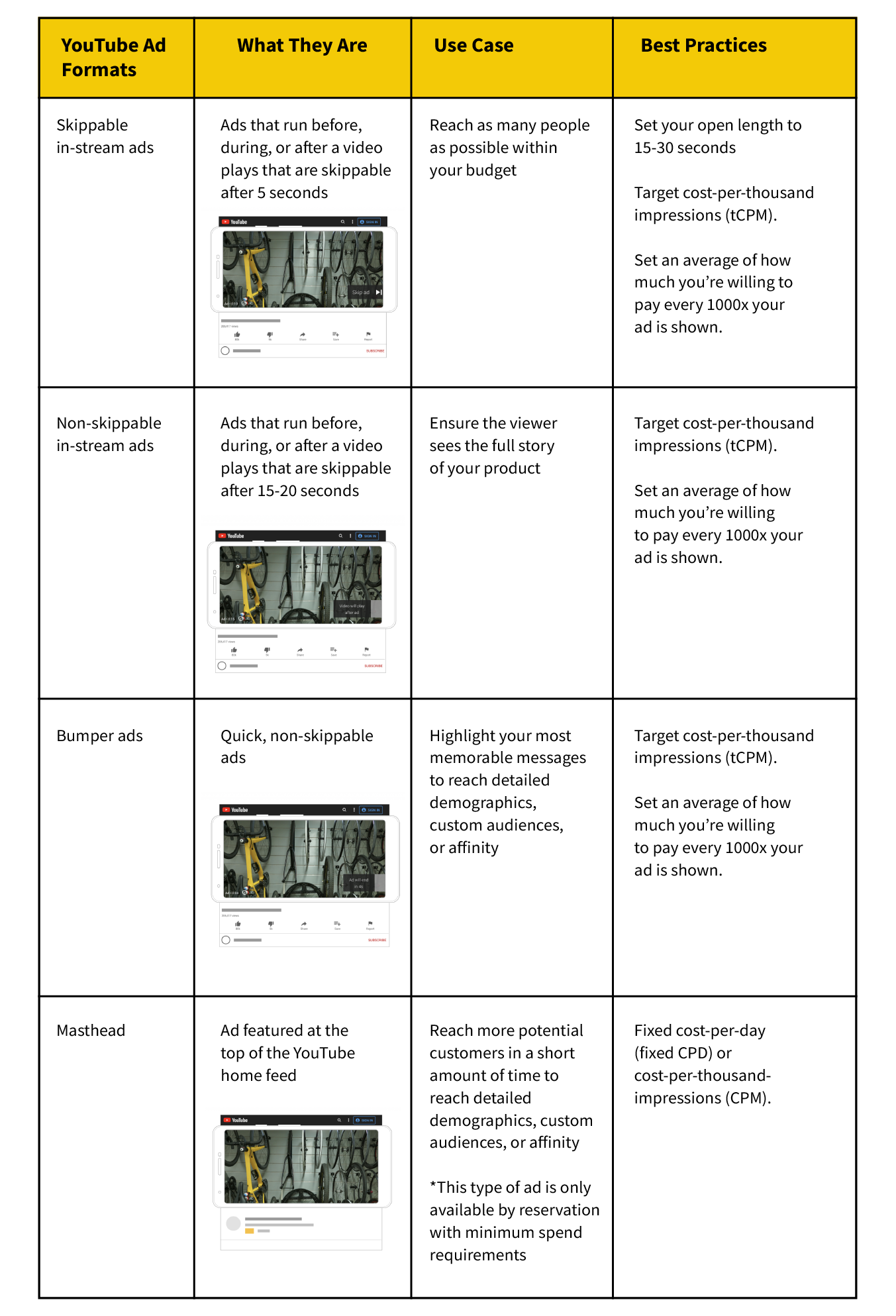 YouTube offers four types of ad formats that help you boost ad awareness and ad recall for your brand.