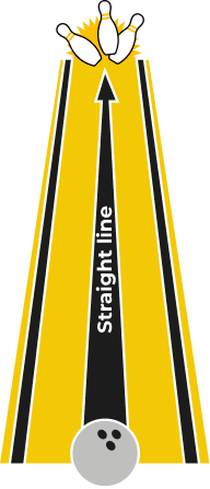 If you haven’t played 10-pin bowling before, here's how it works. Ten pins stand in a triangular array 60 feet away. Between you and the pins, there’s an oiled wooden lane 41.5 inches wide. You have a ball a little less than 9 inches in diameter that weighs up to 16 pounds. Your goal is to roll your ball down the lane and knock down as many pins as you can.