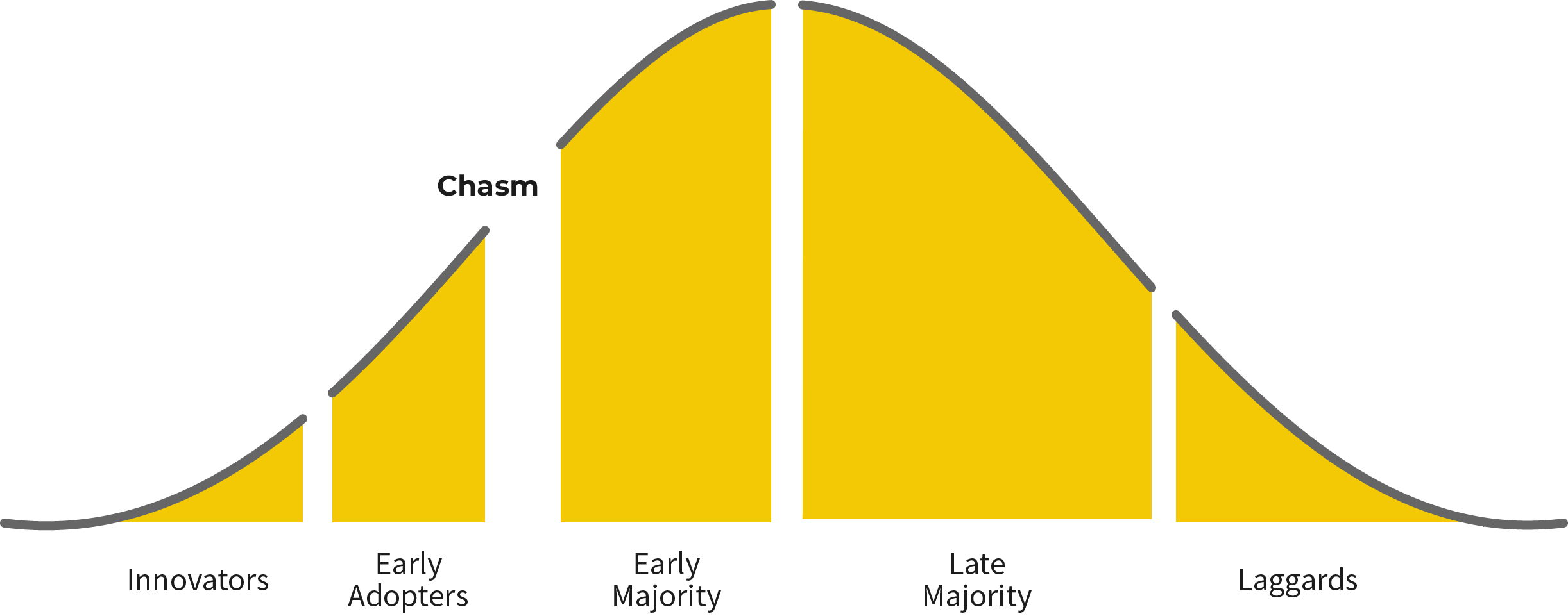 Obvious-choice products don’t just cross the chasm faster. They win over the innovators, early adopters, late majority, and laggards. Laggards, in particular, are more risk-averse and just want to use what everyone else is already using.