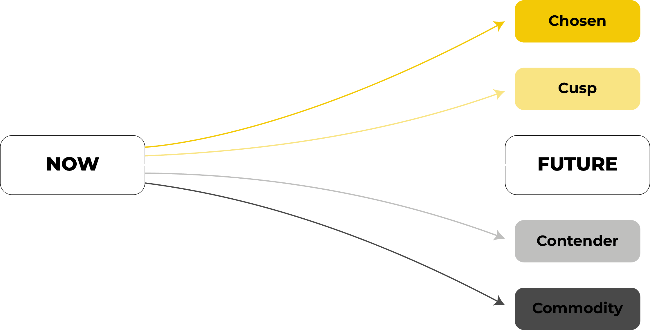Chosen: You could reach the pinnacle of your market. You have become the obvious choice, and your market automatically refers to your product over any other solution. You take the lion's share of the market and enjoy automatic profits. Top talent is knocking at your door. What would becoming the obvious choice look like for you?