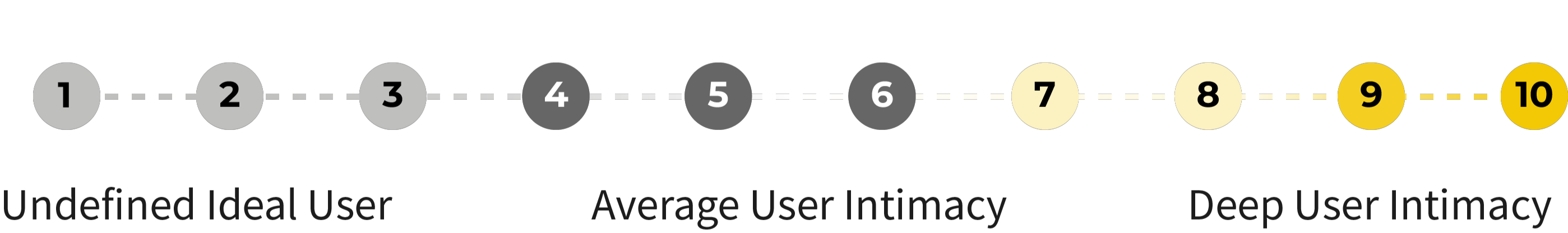 Contender: You might find yourself being seen as just another player in your market. Most users don't know about you, but you offer something unique. Contenders often get acquired for their unique features or copied by those already on top. Being a contender is tough because a unique approach isn't enough to protect your business—competitors can easily replicate what you do. You must gain meaningful market share to stand out. What would being a contender feel like?