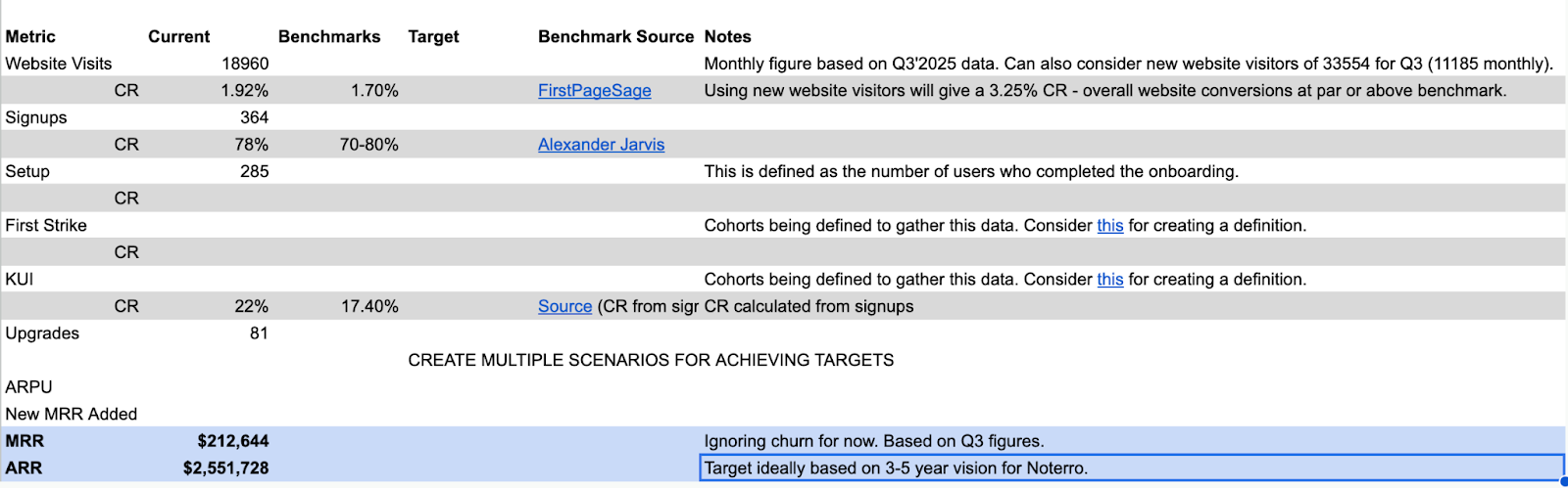 The point was simple: identify which lever actually gets Noterro meaningfully closer to its ARR goals.