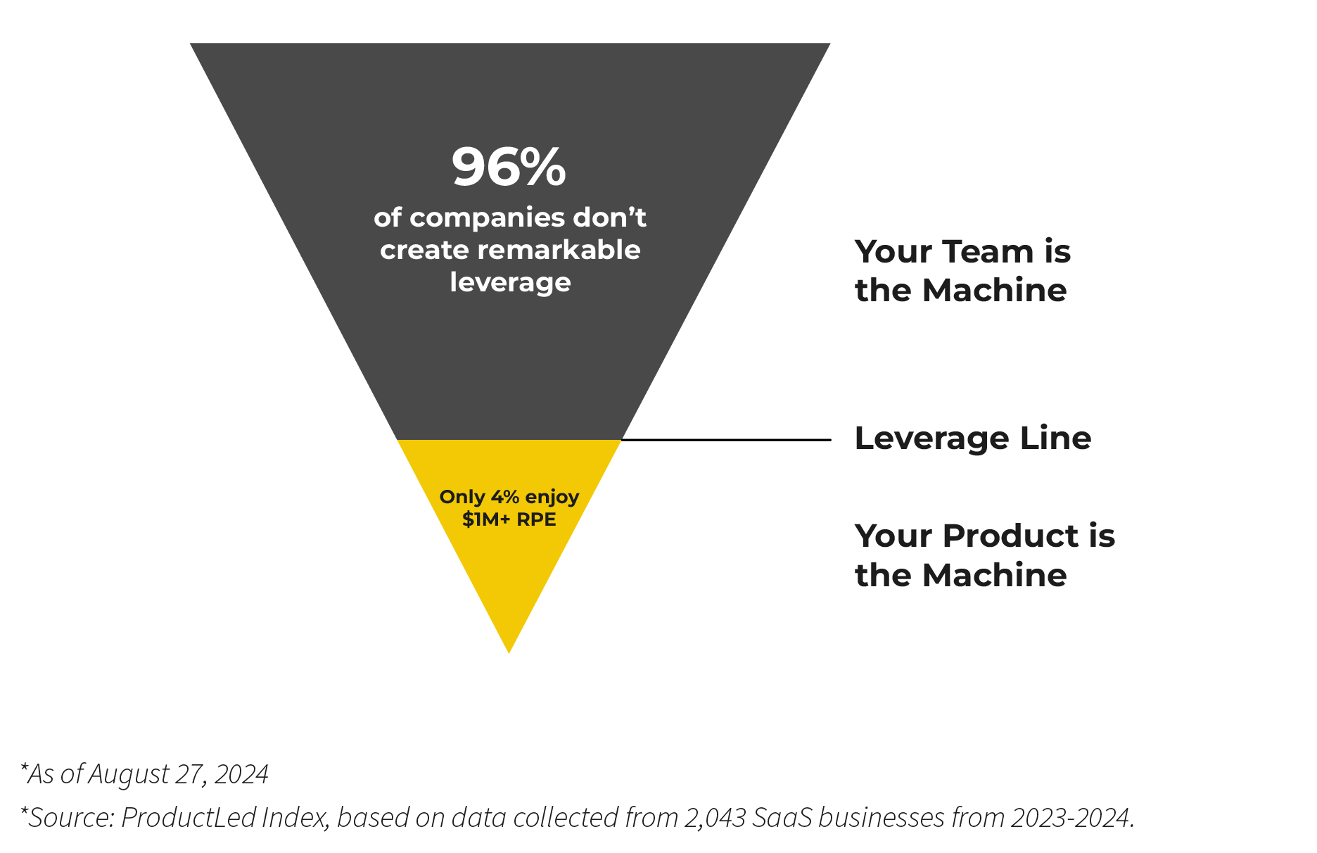 In a product-led business, your product is the machine, not your team. That’s what gives you leverage and helps you maintain lean scale with a high revenue per employee (RPE).