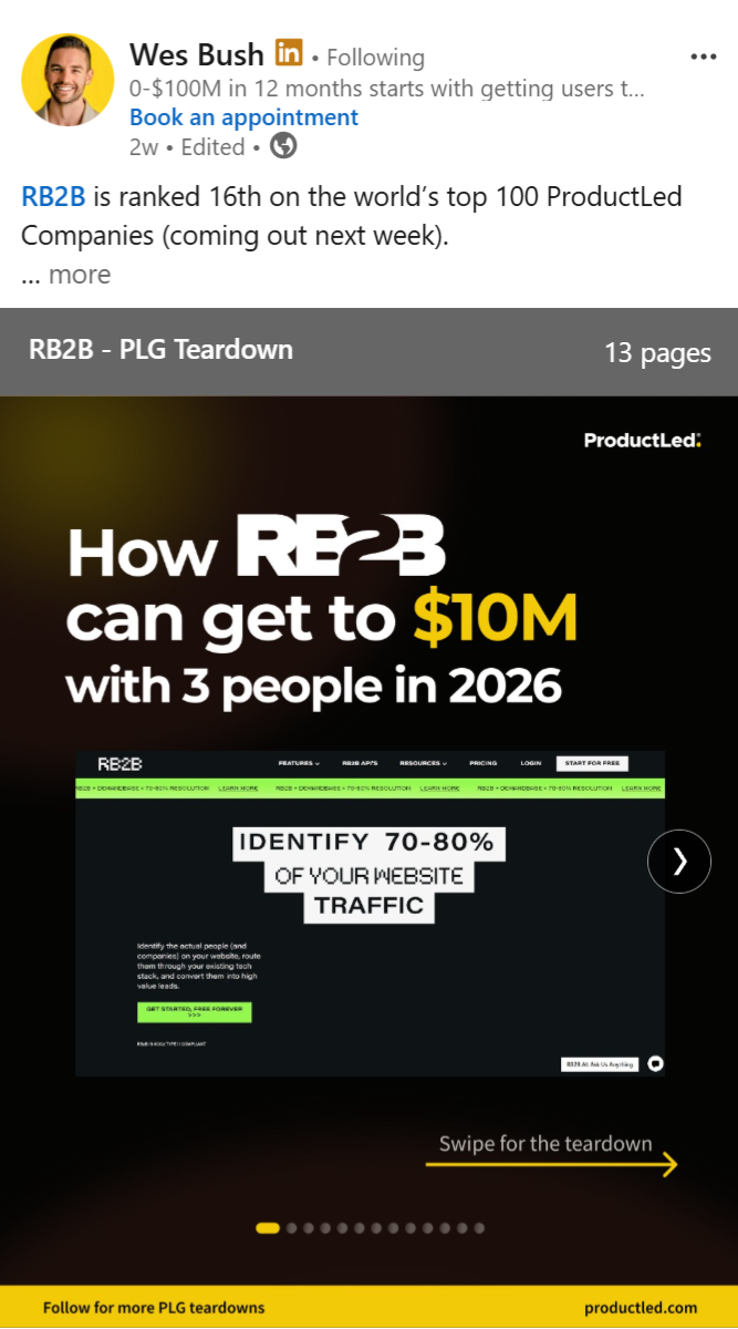 Below, I’m breaking down the 5 moves I’d make if I were trying to get RB2B to $10M ARR with a three-person team in 2026 👇