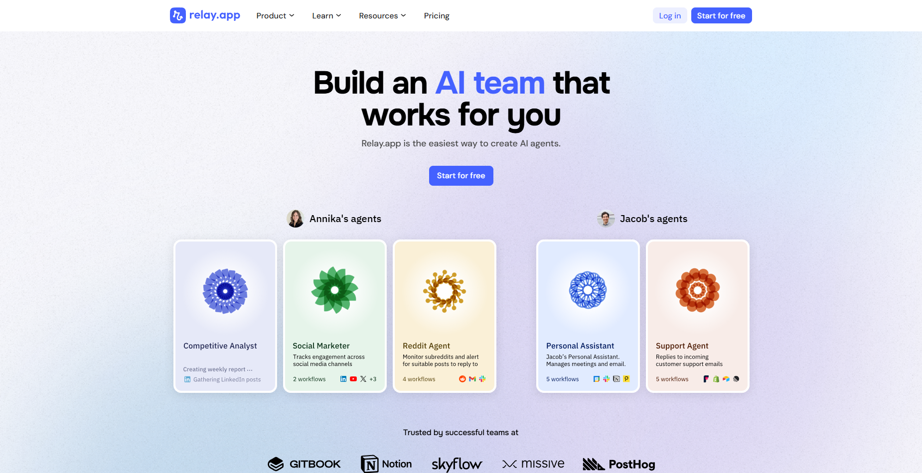 Relay recommends specific agent templates based on your profile and what you’re trying to accomplish.