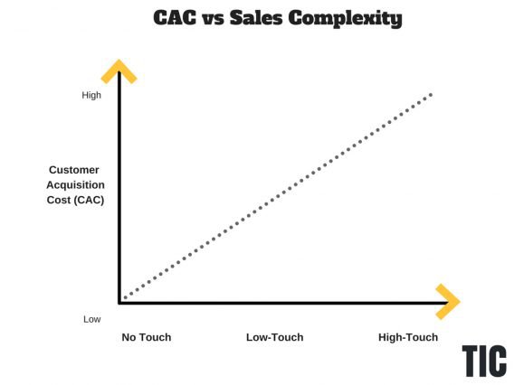 A big downside of the high-touch sales model is that the CAC is out of control, and the sales cycles are extremely long. As you can see in the graph below, high-touch sales is a leading indicator of CAC.