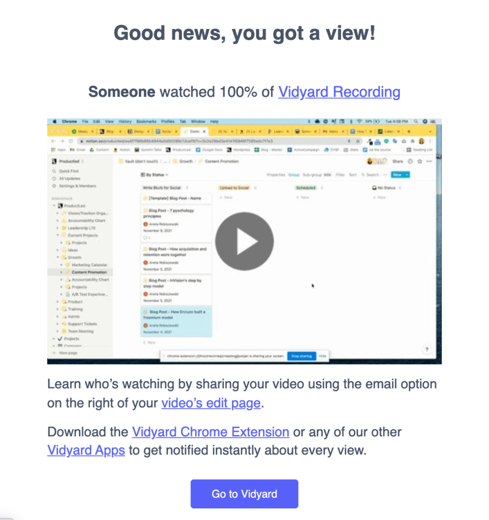Once you take the action to share the video, Wistia is teeing you up to experience a reward. Whether that be saving you time explaining something complex or having your co-worker say they really enjoyed the video.