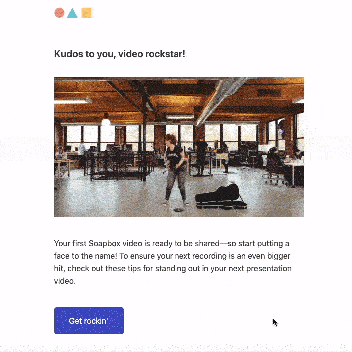 For Soapbox by Wistia, whenever you record your first video and don't share it with coworkers, they send you a user onboarding email encouraging you to take the action to share it with your colleagues or prospects.